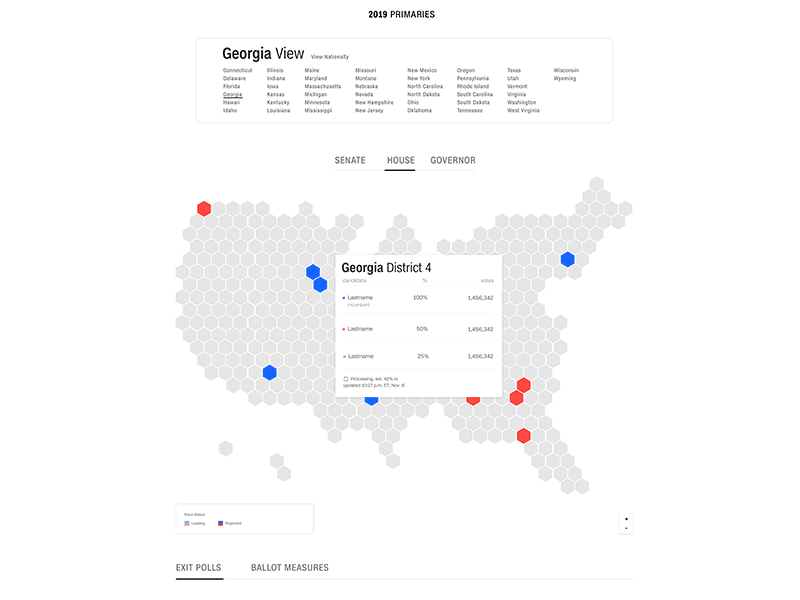 Our first step was to brainstorm how to visually display information in the form of interactive modules that would bring the live election results to readers in real-time.